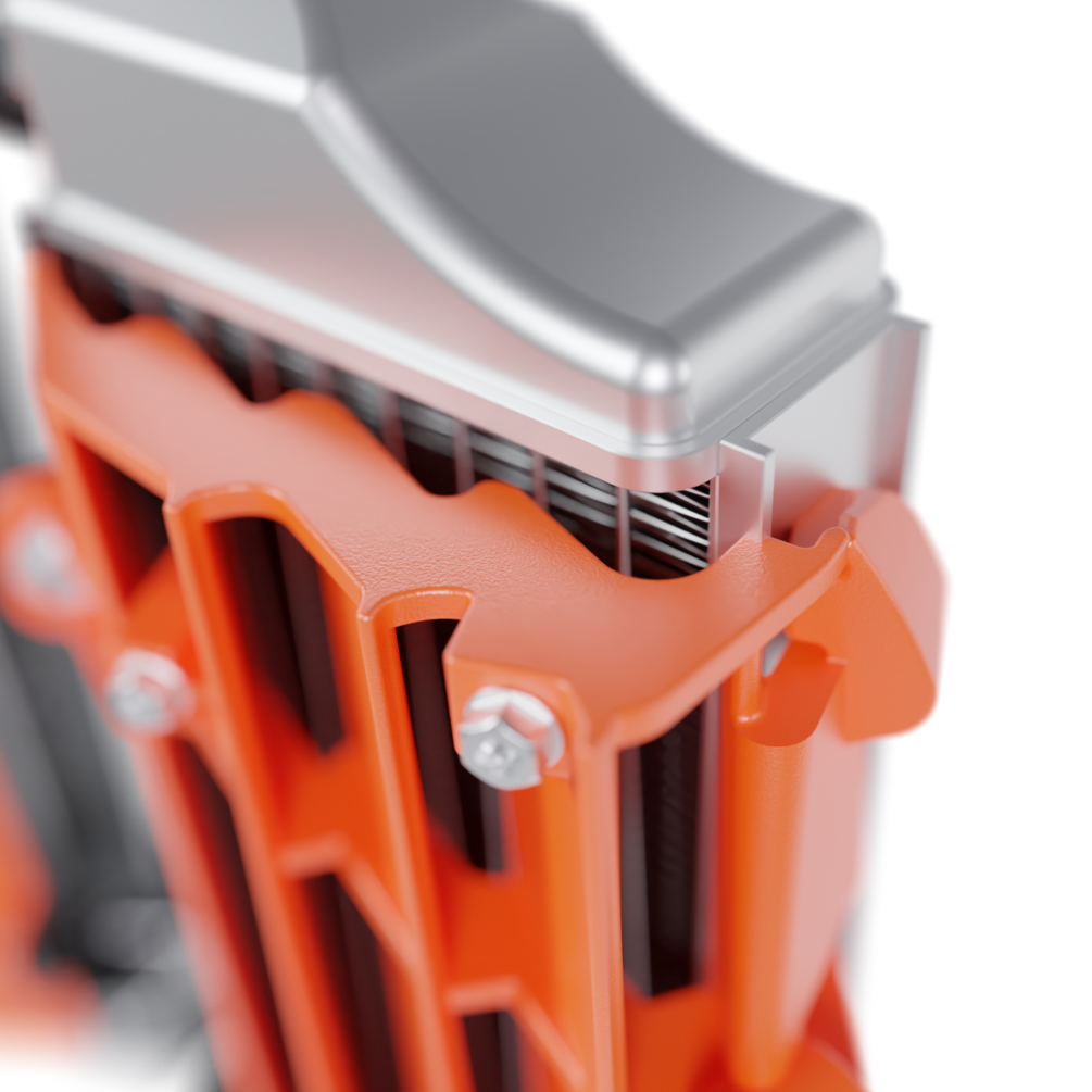 Accurate model of KTM SX250F 2017 radiator & louvers. Modeled largely after 3D scans including the louvers itself. Will fit multiple KTM's.